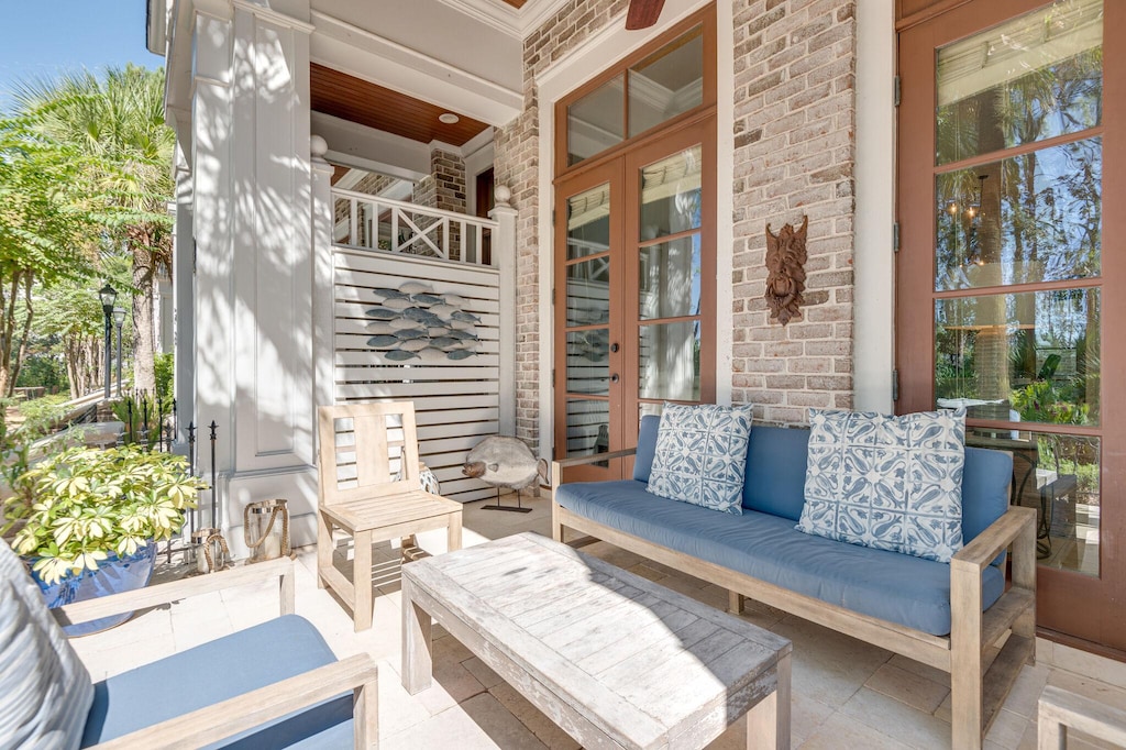 Step into a realm of sophistication with this elegantly designed and stunningly furnished 3 bedroom , 3.5 bath townhome. Sleeping 8 comfortably this home offers 2 bedrooms with a King size bed each, and one bedroom with bunk beds. This beautiful 3 story townhome is located at the heart of Baytowne Wharf in the Le Jardin community. Known for its French Quarter, New Orleans inspired architecture, The Le Jardin is most definitely a favorite of our Sandestin Resort guest! This beach themed unit has a spacious front patio with plenty of comfortable seating. Entering the front door, the large living room has plenty of natural lighting and a large sectional sofa. The dinning room table seats a total of 6 and includes seating for 3 at the breakfast bar. The unit also includes a full kitchen with a gas stove, a wine cooler as well as stainless steel appliances. The kitchen also includes plenty of pantry space. The half bath is located directly between the 1st and 2nd floor off the staircase. Located on the second floor are two guest rooms as well as two full bathrooms. The first guest room has a twin bunk bed, and the second guest room has a king-sized bed. Each room has its own balcony entrance for your convenience! The master bedroom and bath make up the entire 3rd floor. With a king-sized bed, wood flooring and a private balcony, room is an absolute treat. The electric fireplace is perfectly placed for you to enjoy while in bed or while you relax in the large tub. The master bath is complete with his and her sinks as well as a large tub and walk-in shower. This unit is great for a family trip and is located right where all the entertainment and fun are!