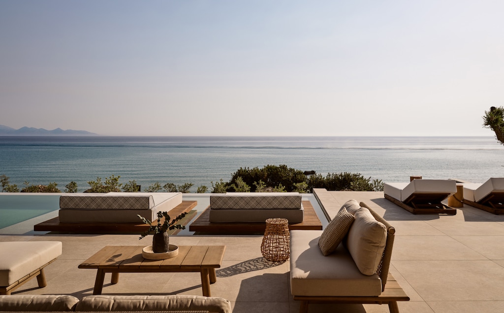 With enviable views to the pool & sea, the quintessential living experience radiates a chic elegance and a wonderfully laidback ambiance that enhances the comfort level of guests. Minimalistic design marks every corner of this holiday home gifting them with their unique identity, spoiling guests with premium bed comfort, design and amenities. This captivating Residence boasts exquisite interiors that exude a certain ethereal elegance, in its 160m² indoor space. For those who wish to travel together with loved ones, but also have moments of privacy & seclusion, this home is the perfect choice. Offering a bespoke design, the exclusive Residence boasts three bedrooms, a Living-cum lounge area with couch for one more guest to sleep & a fully equipped kitchen. An additional bathroom lays at the level of the living room. With direct access to the iconic pool from the living room area, the iconic villa can comfortably accommodate up to 6 guests in real beds. The maximum capacity of this villa is 6 guests. Kindly note, that the bedrooms are located a level higher than the pool & living room, featuring their own private terrace.