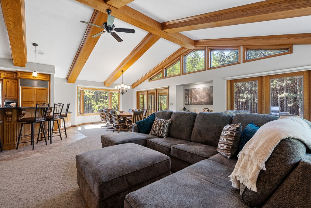 Spacious, elegant, with thoughtful amenities, Enchanted Pines boasts sleeping arrangements for up to 19 guests, and plenty of room to host your special occasion. The ground level bar and fridge is a great spot for a cocktail hour. The lower level entertainment room has no shortage of activities from poker, pool, and foosball. If you prefer the outdoors, enjoy roaming the forest or dining al fresco on the back patio. However you choose to relax, Enchanted Pines will suit your needs.