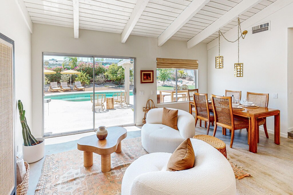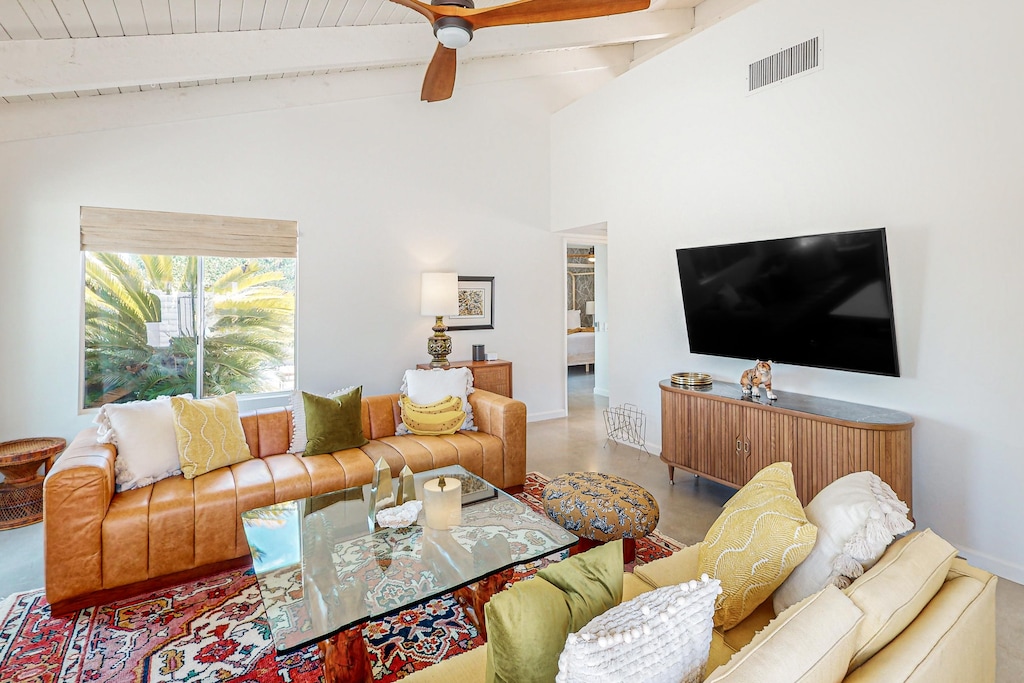 This updated 3-bedroom, 2-bathroom home blends timeless mid-century charm with modern comfort, designed for guests looking to settle in and enjoy the best of desert living. Whether you’re wintering in the sunshine, working remotely, or planning an extended escape, The Palmita offers the space, style, and amenities to feel right at home.