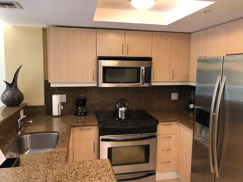 Coconut Grove Condo: Full Kitchen & Balcony Views