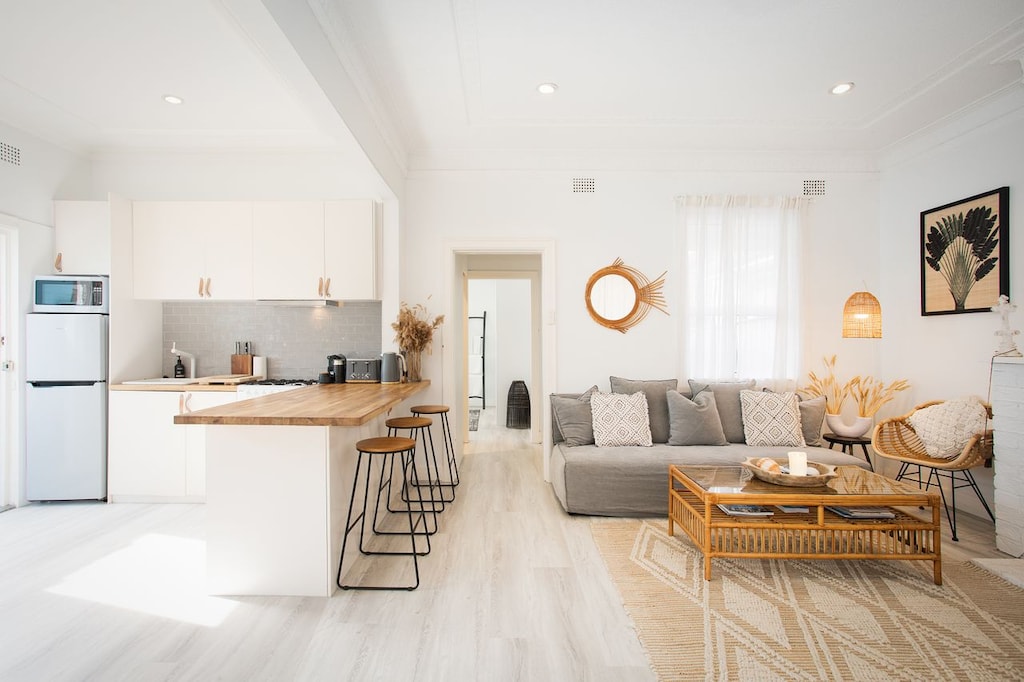 Step into sun-washed beachy boho interiors that seamlessly blend charming character features with contemporary comforts. Every corner exudes a coastal charm, offering a welcoming atmosphere that resonates with the laid-back Bondi lifestyle.