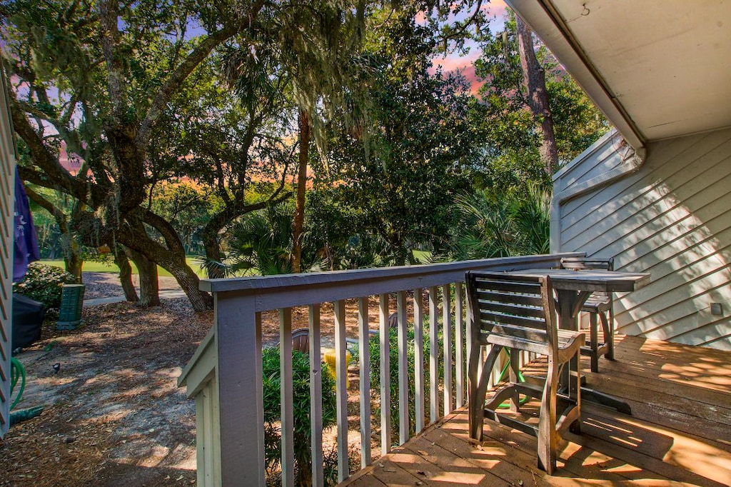 Through the sliding glass doors, you’ll find a spacious outdoor deck overlooking the golf course with a bistro table and BBQ grill for true island-style dining.
