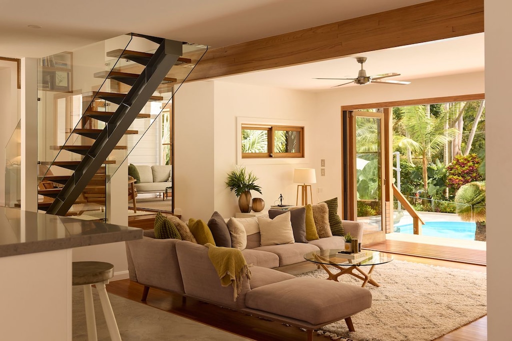 The gardens with meandering flagstone and white rock pathways throughout provide a magical guide through this majestic property. With the beach just minutes away (depending on traffic), and convenient access to Bangalow, Byron and Ballina airport, this property truly offers the perfect blend of relaxation and adventure.