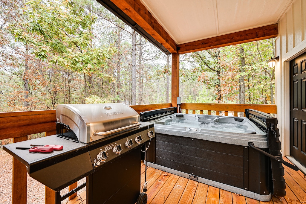 - Furnished porch w/ hot tub, gas grill (propane provided) & dining area