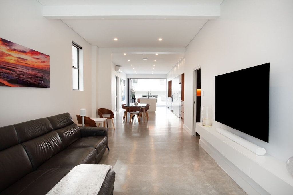 Nestled in Sydney’s eastern beachside suburb of Clovelly, Clovelly Contemporary, offers three substantial levels of pure holiday indulgence. Ideal for large groups, this home boasts ample accommodation options, with a private annexe and multiple kitchen areas. From the moment you arrive, you’ll be surrounded by sleek sophistication that permeates every corner of this exquisite property. Styled with a contemporary monochrome scheme throughout, the ambience is elevated with elegant touches of marble, gracing countertops and bathtubs with an air of luxury and refinement. This is the perfect home away from home for a modern traveller looking for an exquisite Sydney beachside abode.