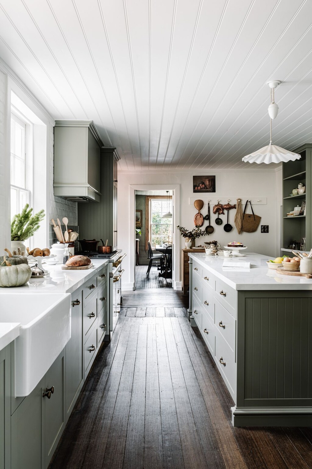 The house features multiple living areas — including a formal living room, breakfast room and formal dining room complete with a large entertaining table and vintage drinks cabinet. The large kitchen is fully equipped with everything you need, including a Lacanche oven from Burgundy and beautiful antique platters. Guests can also relax on the covered porch and among established gardens that surround the house.