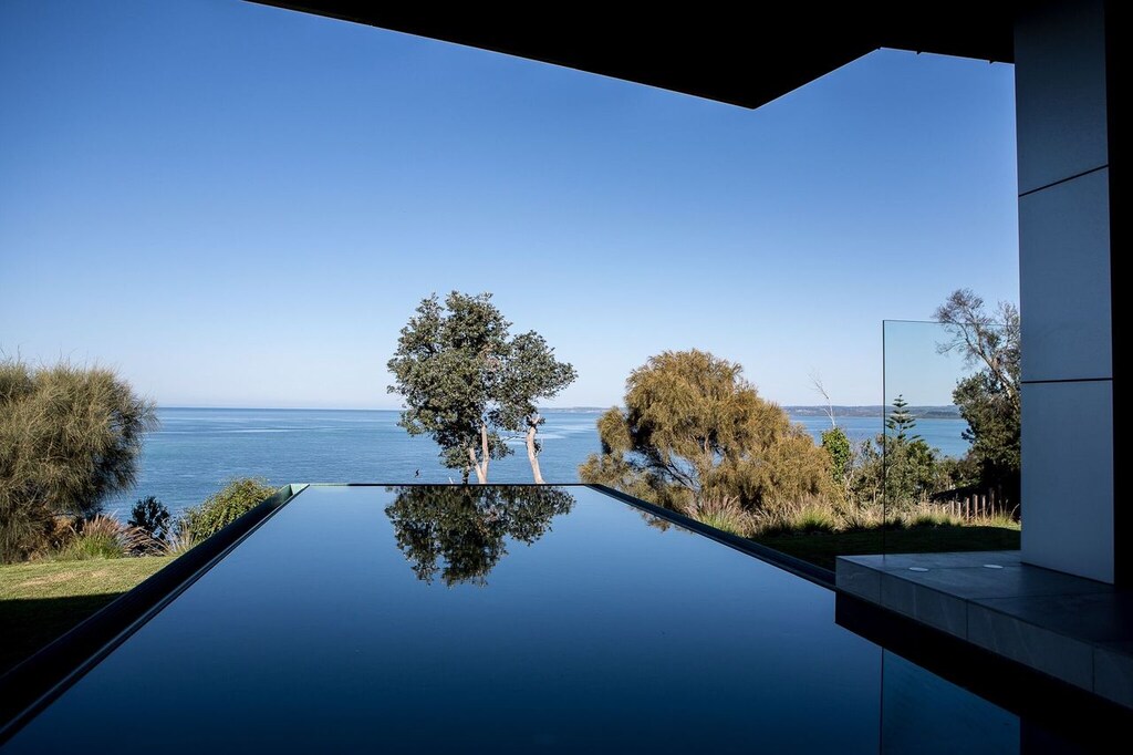 Somers Sanctuary contains everything your holiday heart desires. The magic starts on entry with an architecturally designed sculptured entrance opening to the middle level which houses two open plan living spaces with access to an outdoor covered terrace, a suspended kinara fireplace, dining room and kitchen (with Gaggeneau appliances and butler’s pantry) all overlooking the sparkling Western Port Bay waters and wet edge swimming pool through floor to ceiling windows.