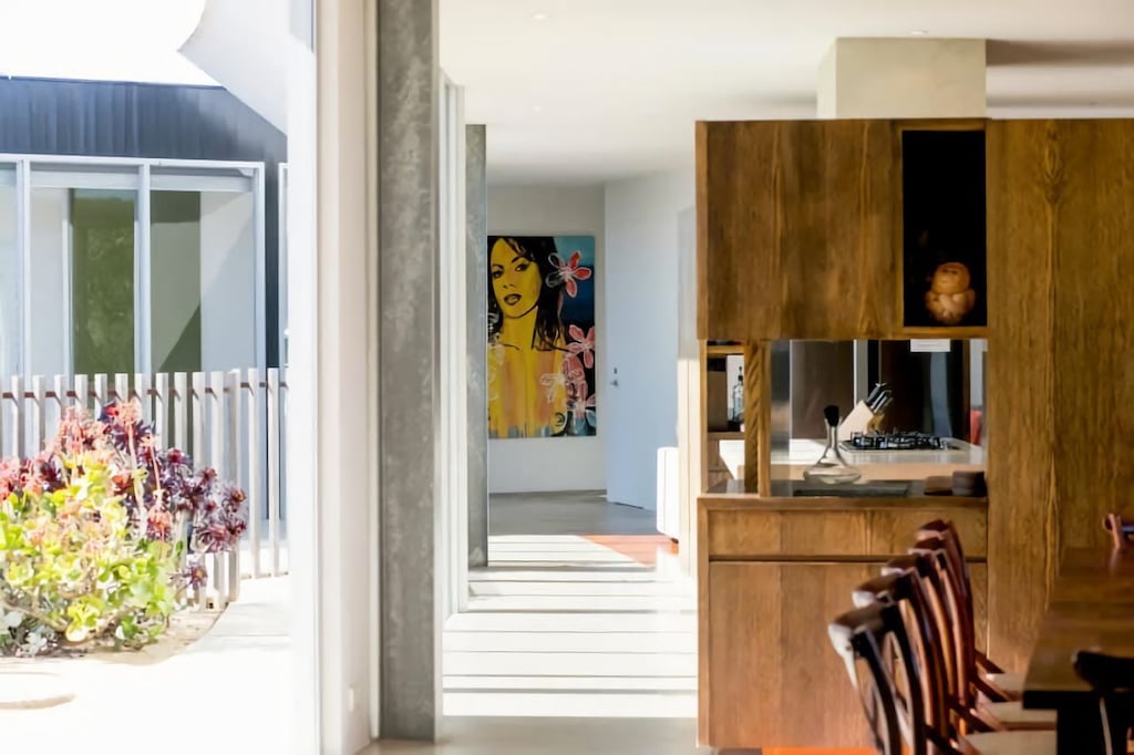 Guests will be impressed with curved, exposed living spaces opening and flowing from the library to relaxed living (with open fireplace), dining, kitchen and further living spaces all which overlook the solar heated lap pool, please bring your own pool towels. Please note the bi-fold doors are unable to be opened fully at this stage.