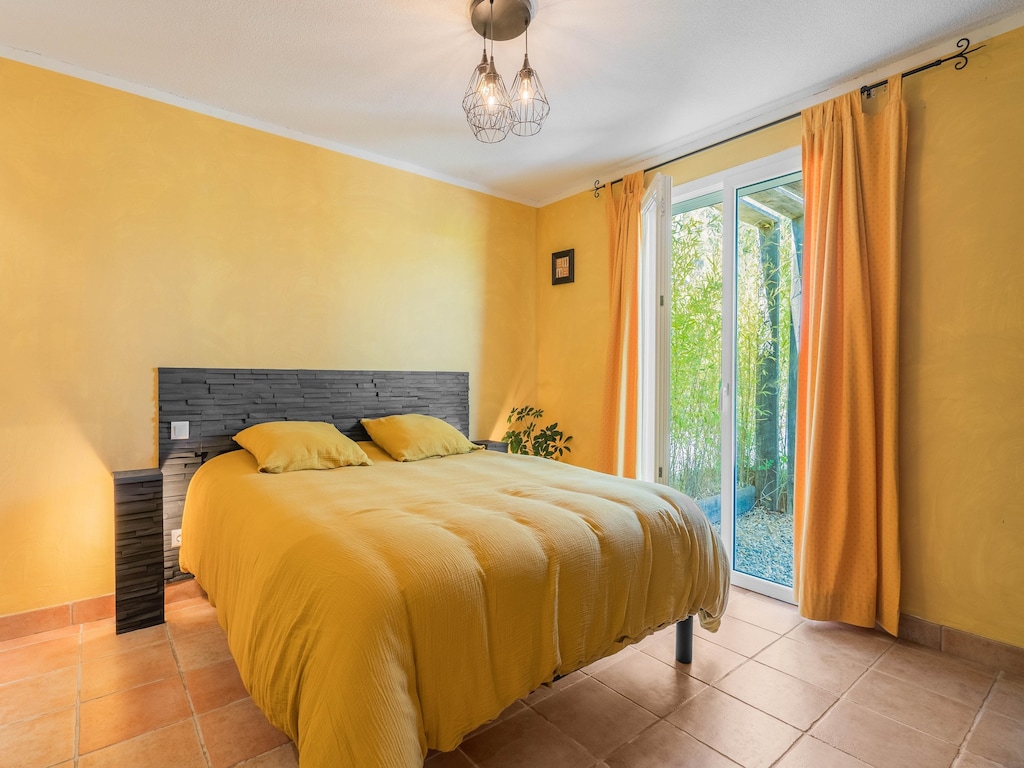 This picturesque villa near Les Vans welcomes up to 6 guests with refined décor, pet-friendly comfort, and a private pool nestled in a peaceful garden. The shaded terrace offers breathtaking valley views, ideal for relaxing mornings or sunset dinners. With free Wi-Fi and elegant interiors, it’s an inviting base for family or friends craving both nature and comfort.