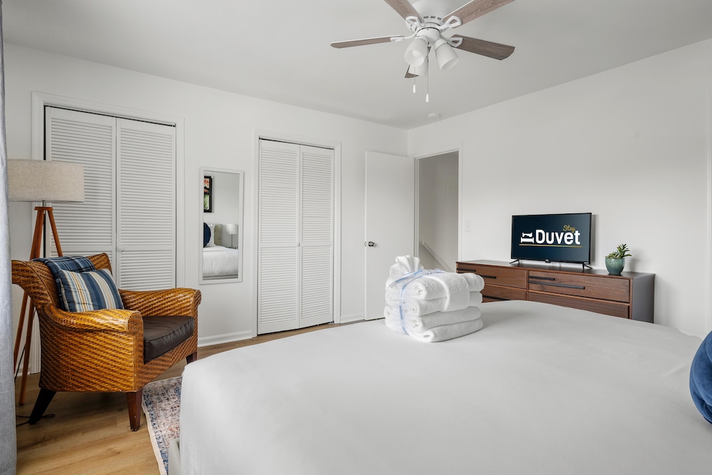 Step inside to discover a thoughtfully designed living space that effortlessly combines modern amenities with southern charm. The townhouse features two spacious bedrooms, each equipped with comfortable beds and ample storage space. The primary bedroom includes an en-suite bathroom for added privacy and convenience.