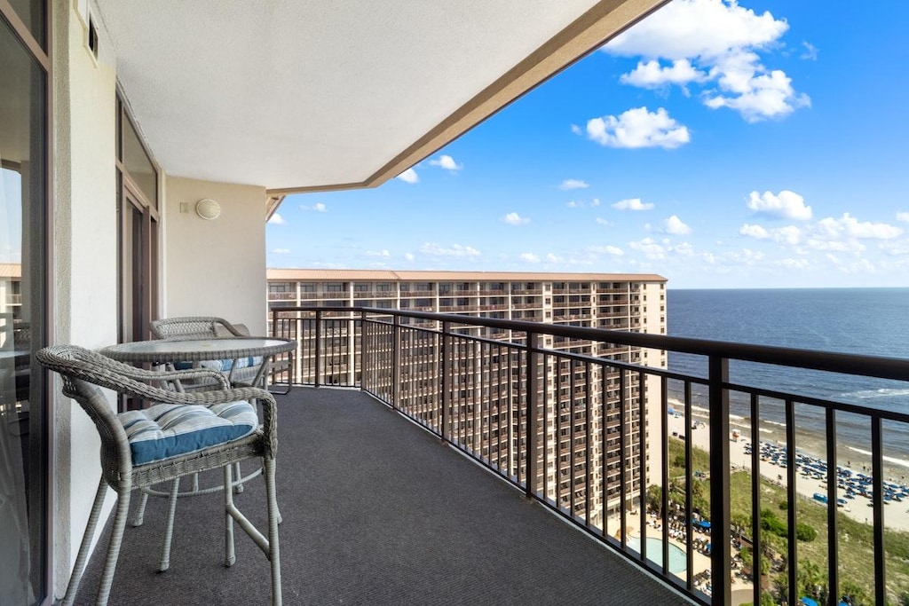 This oceanfront two-bedroom, two-bathroom condo comes with a spacious, fully equipped kitchen, a washer and dryer, glass-enclosed showers, a jetted tub in the master bathroom, a large private balcony, three flat screen TVs, and wireless Internet access. The sleeping arrangements include one king and two queen beds.