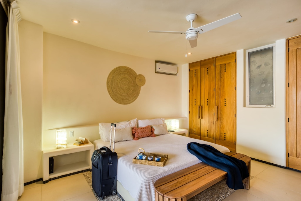 Discover the exclusive charm of Villas Kau Kan, located on Zihuatanejo’s premier beach. Each of our 8 villas is individually designed by its owner, showcasing unique styles and personal touches. Every villa includes a spacious bedroom and 1.5 bathrooms, providing the perfect blend of comfort and elegance.