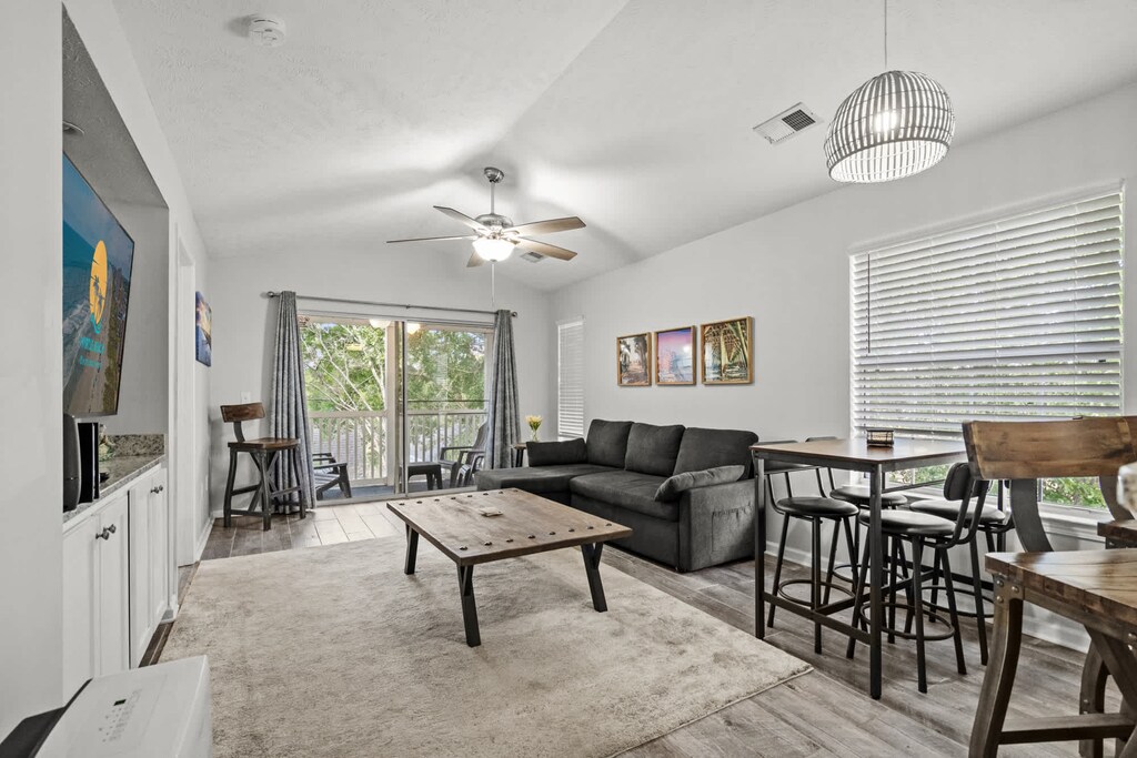 It is our top priority to provide a clean and safe location for our guests. In addition to enhanced cleaning protocol from our professional cleaners, we provide a contact-free check in. The entrance-way is also in open air which allows you to avoid enclosed hallways/crowded check in areas!