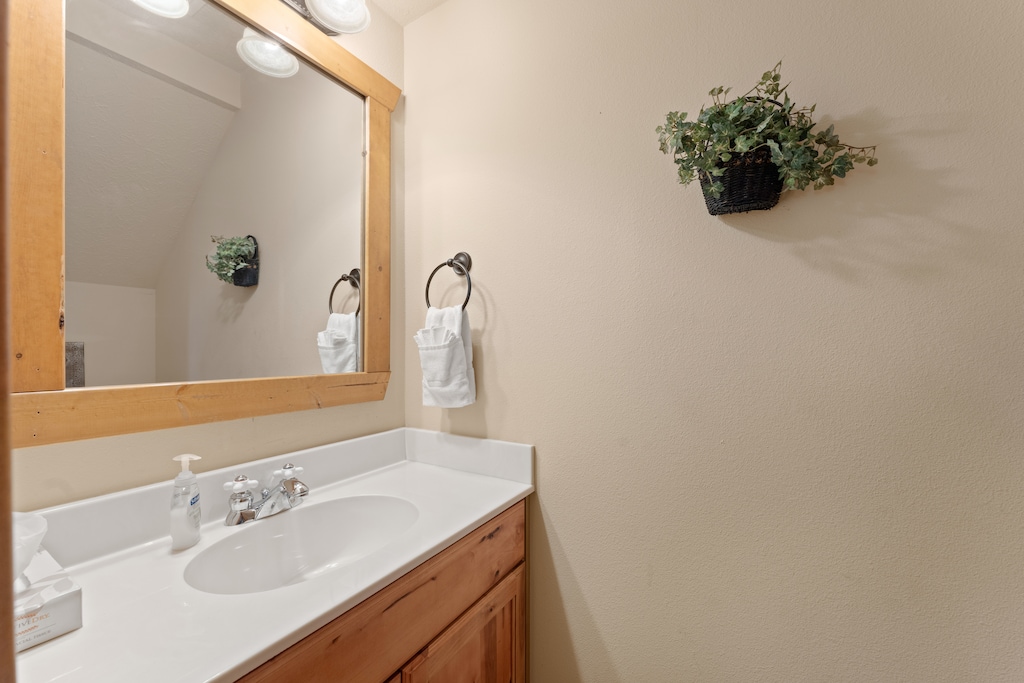 The one-bedroom, one-and-a-half bathroom cabin is a cozy, comfortable retreat.