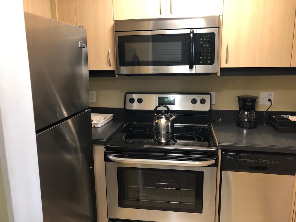 🍳 Full Kitchen: Dishwasher, Fridge, Microwave, Oven & Coffee Maker