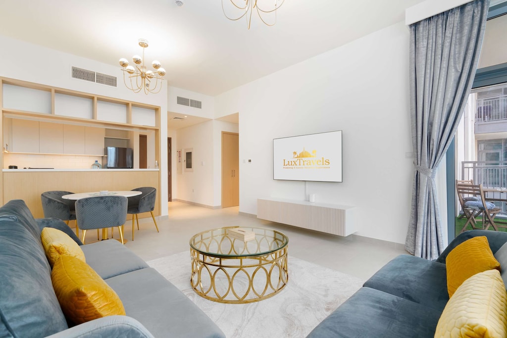 Floor to ceiling windows open onto your private balcony from where you can enjoy spectacular views of Dubai harbor. Inside, those windows really bathe the space in natural light, making it a real pleasure to spend time in here. Stay relaxed or be entertained, thanks to the ultra-comfortable couches set around a coffee table with a view of the 55-inch flat screen LED television. There is also a dining table with room for up to 4 guests to gather to eat, play, even work.