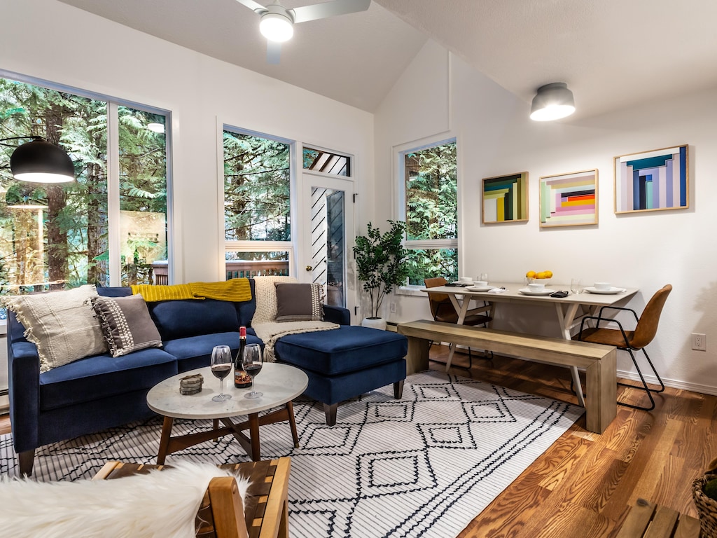 Enjoy this newly updated deluxe two-bedroom, two-bathroom end unit condominium home featuring a cozy and modern custom interior design. Enjoy breathtaking river surroundings and views from the private balcony just off the living room. Beyond your doorstep, enjoy front row seats to the recurring whispers of Nooksack River offering you a tranquil space for respite while you stroll the European walking trails throughout the 20 acres of Snowater Resort with your pup.