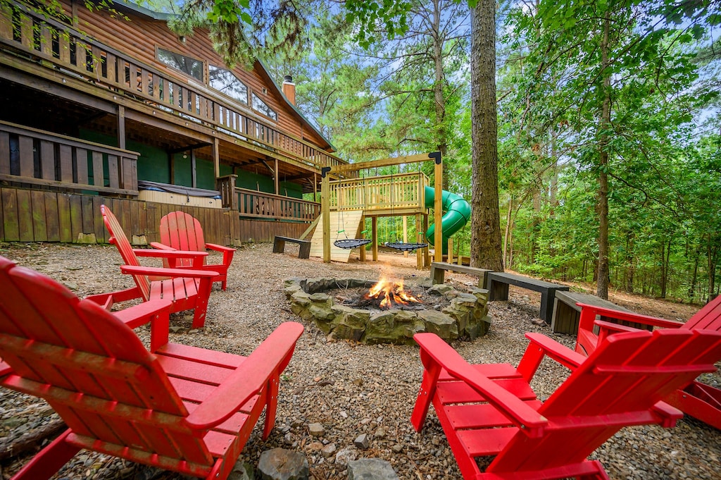 Embrace the natural beauty that surrounds Sasquatch Hills from the comfort of its two levels of wrap-around decking. Relax in the recessed hot tub under a canopy of stars, engage in friendly competition with the foosball table and corn hole games, or take a moment to breathe on the porch swing as you soak in the tranquil forest views. Evenings can be spent around the fire pit, sharing stories and roasting marshmallows, creating lasting memories in a picturesque setting.