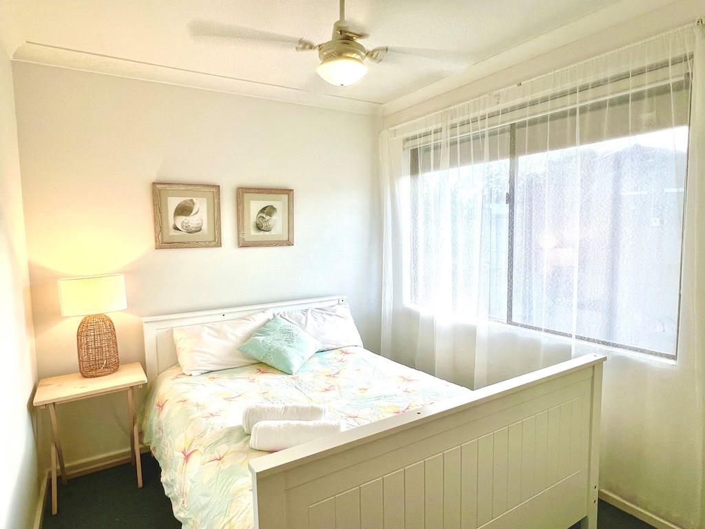 - Bed 2 with double bed, ceiling fan, built-in robes and roller shutters