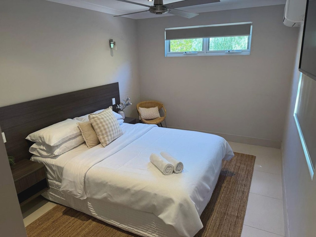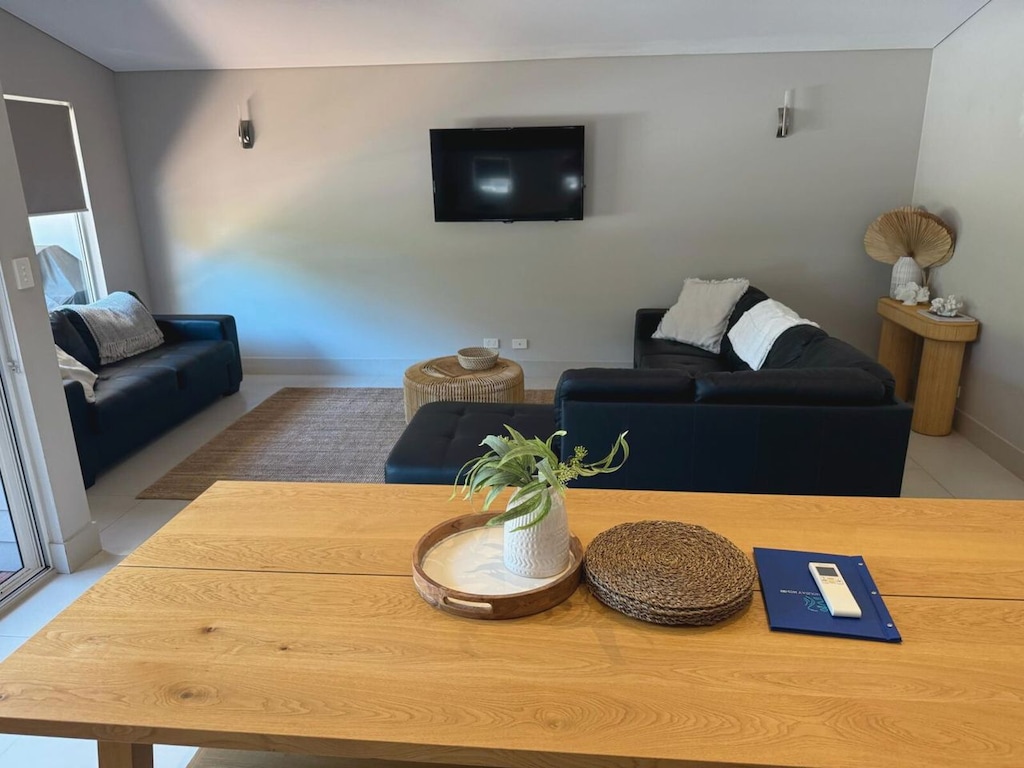 The villa extends into living spaces brimming with sophistication. Enjoy upgraded comforts, including a new Smart TV in the main living area, plus Chromecast-equipped TVs in each bedroom for your Netflix and streaming needs. The dining room is a haven for conversations over meals prepared in the well-equipped kitchen. Summertime grilling adventures come alive with the Gas BBQ outdoors, and for more casual moments, the porch/deck allows you to bask in Dunsborough’s weather and Australian bush views.
