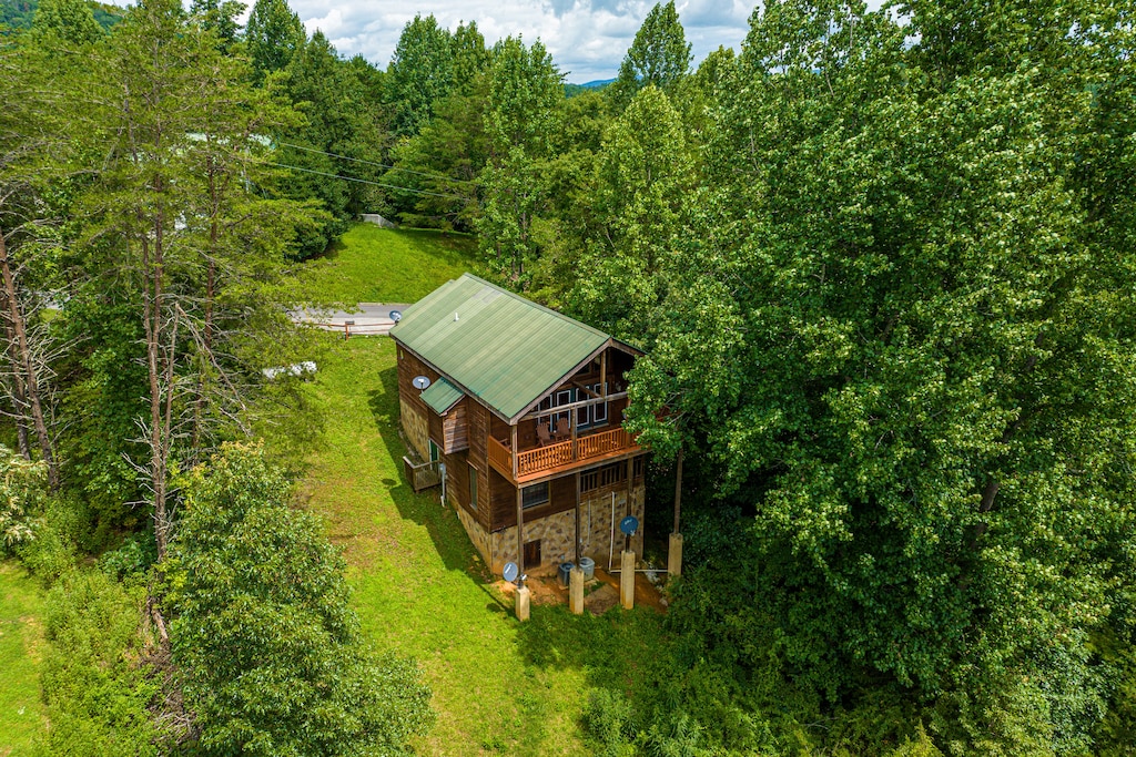 Dreaming of a Getaway with a View? Tranquil vistas of the Smoky Mountains await! Cozy stone fireplace and large Tv inside. Fully appointed kitchen, game room with fireplace, bar top, pool table and multigame arcade. Sports programming on the game room’s Tv. Accessible entrance and layout with bedrooms on each level. No mountain roads to navigate for stress-free arrival. Resort environment with incredible amenities.