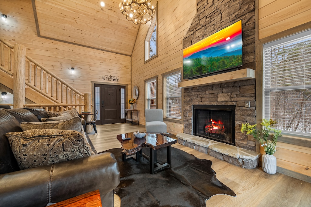 Indulge in a luxurious stay at Splash-N-Moose Lodge in Gatlinburg. This cabin can accommodate up to 9 guests and offers rustic amenities, a private indoor pool, and a cozy fireplace for family moments. Enjoy a meal while kids play in the game room. Relax in the hot tub and enjoy the mountain breeze from the deck. Close to popular attractions in Gatlinburg and Pigeon Forge, this serene setting is perfect for creating lasting family memories.