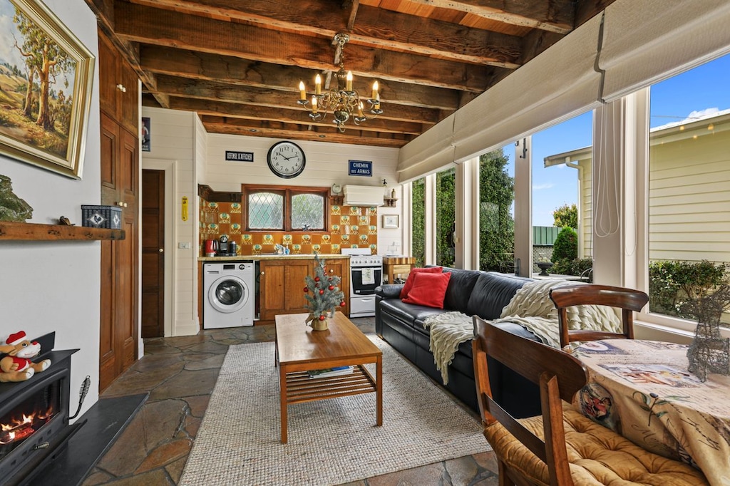 The studio features an upstairs bedroom with comfortable queen-sized bed and views of the Barham River meeting the ocean, as well as an ensuite bathroom. The downstairs living area is completed with a fully equipped kitchenette, a comfortable couch to unwind after a day in the sun and a charming fireplace for those cooler evenings.