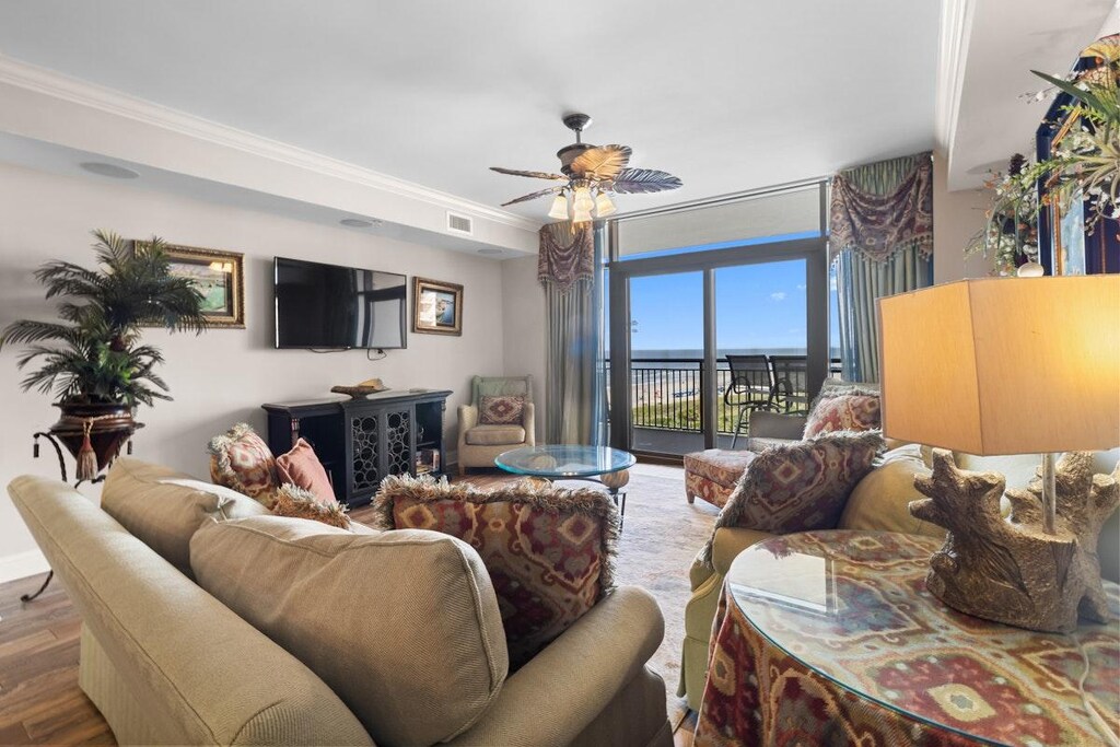 This oceanfront three bedroom, three bath condo comes with a spacious, fully equipped kitchen, a washer and dryer, glass enclosed showers, a whirlpool tub in the master bathroom, a large private balcony, four flat screen TVs and wireless Internet access. The sleeping arrangements include one king in the master bedroom, one queen in the second bedroom and two queens in the third bedroom.