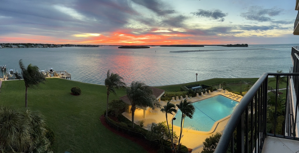 of the Gulf of Mexico, overlooking the sparkling pool. The open and airy floor