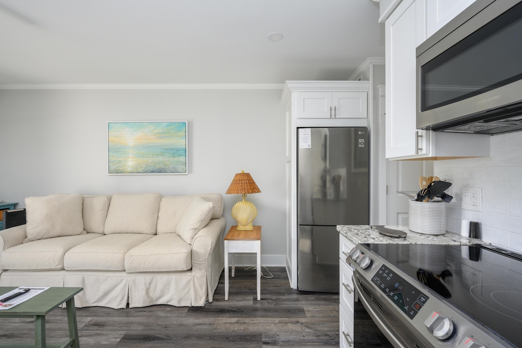 You will love to vacation at this newly completed renovated Ocean Villa at Hilton Head Beach and Tennis with top-of-the-line finishes. This 1 bedroom 1 bath unit sleeps 4 with a King bed in the bedroom, child bunk beds in the hall, Perfect for a couple or small family. The open floor plan kitchen has granite counters, full sized stainless appliances, and white shaker cabinets . There is beautiful coastal luxury vinyl plank flooring throughout, and a state-of-the-art tiled bathtub. You will enjoy your vacation at this villa. The villa is located on the quiet marsh side of the resort and is just steps away from the beach and pool.