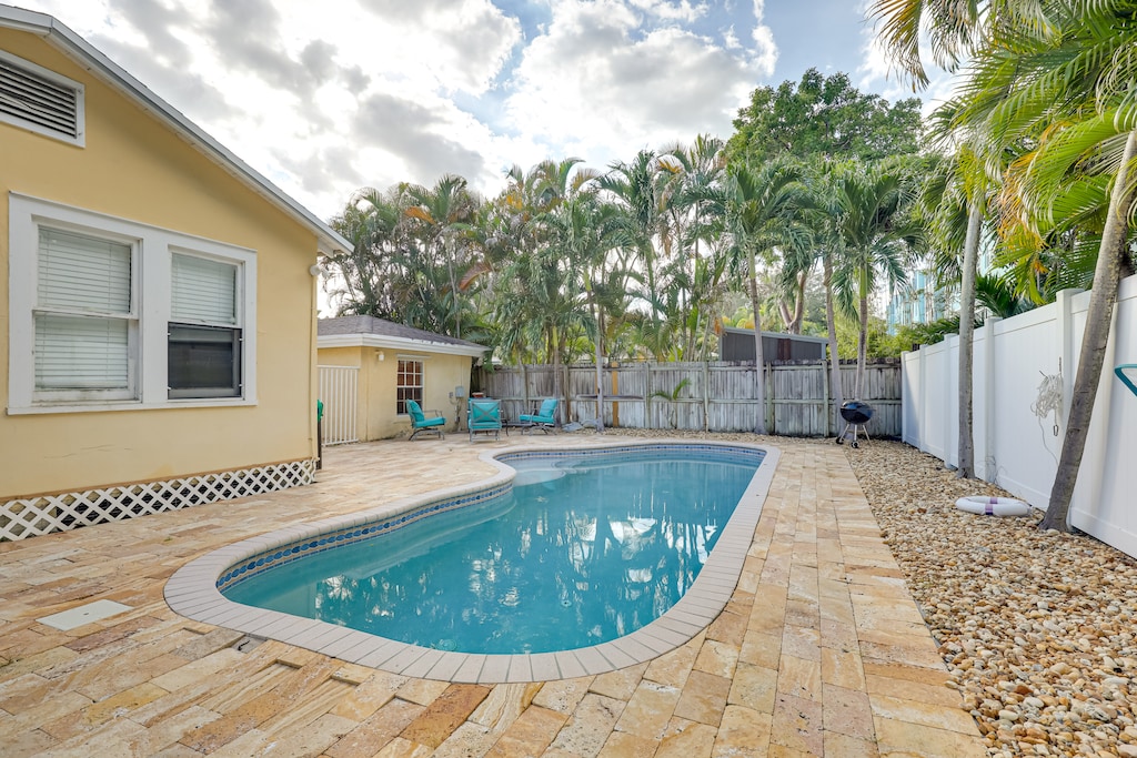 Sunshine and serenity await at this 2-bed, 1-bath vacation rental in Fort Lauderdale! This home features a full kitchen, a cozy living area with a Smart TV, a screened-in porch for savoring meals as the sun sets, and proximity to outdoor adventures like fishing, boating, and golfing. After visiting the museums and attractions downtown, unwind with a dip in the pool or a family BBQ. Book now!