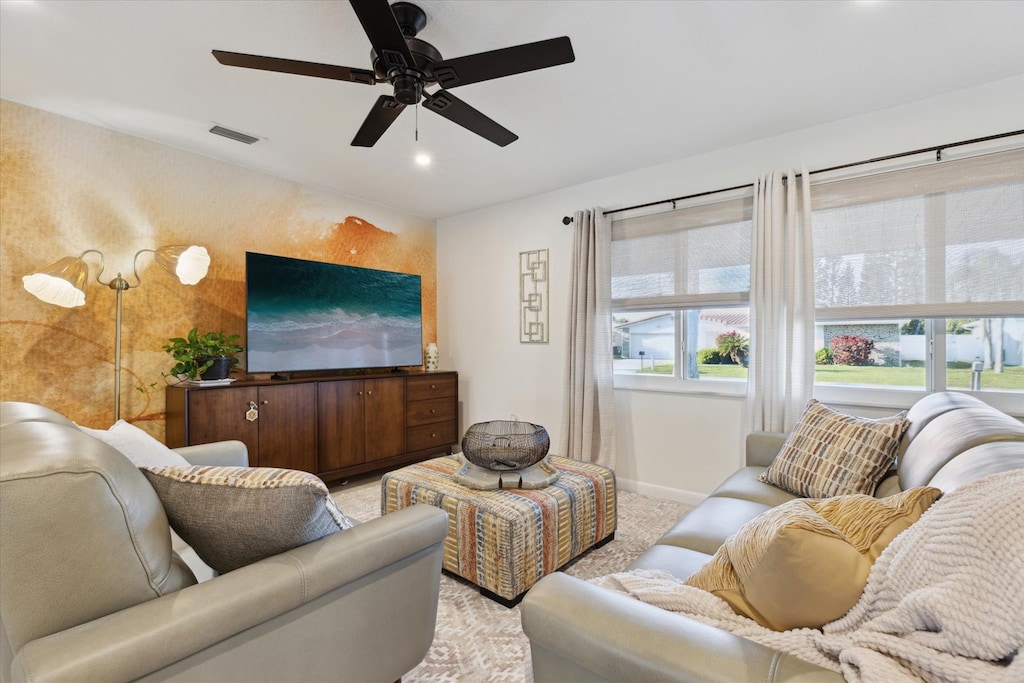Spacious living area with comfortable seating and smart TV for movie nights