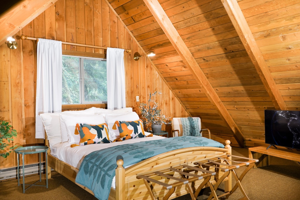 The upstairs loft bedroom features a Queen Size bed, small sitting area and smart TV for streaming your favorite subscription channelsEnjoy an on demand water heater and mini split heat pump to keep you warm in the winter or cool in the summer.