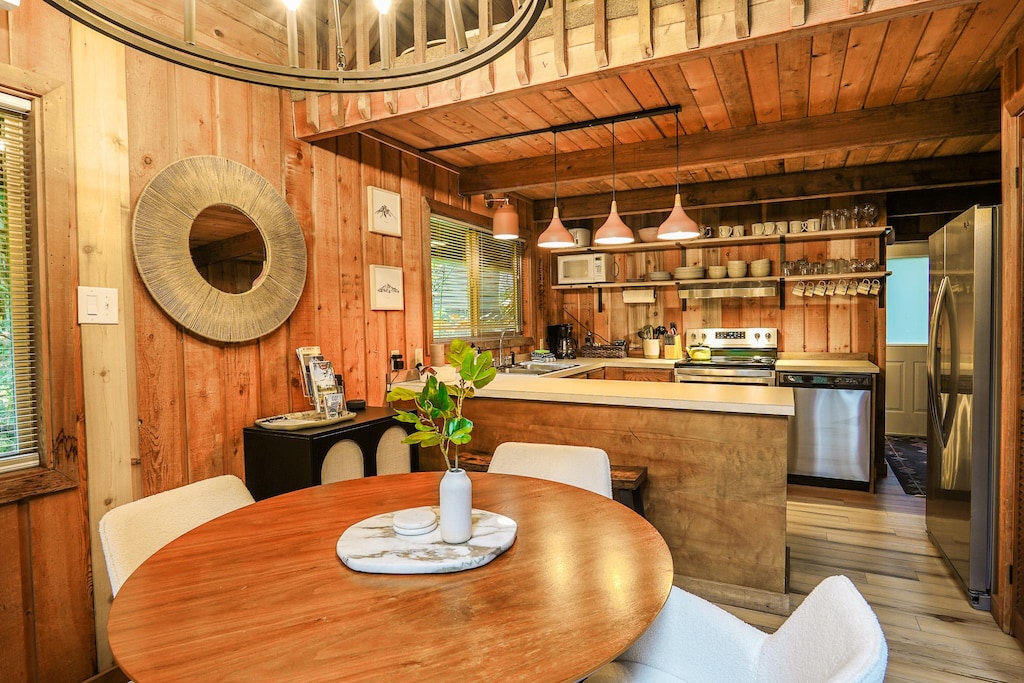 Enjoy your own cozy Mountain Retreat for your next romantic getaway. This place has an authentic rustic cabin feel yet is also warm and inviting with all the modern amenities.