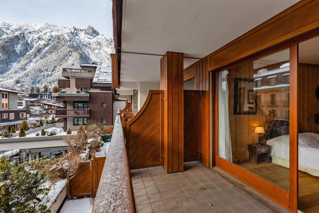 The apartment is centrally located, just a few steps away from the hustle and bustle of Chamonix, but also close to the ski slopes, just a one-minute walk from the Aiguille du Midi ski lift.