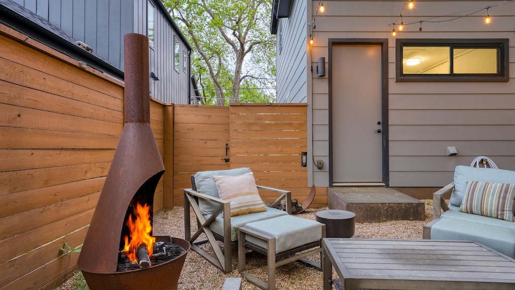Outside, the backyard steals the show. Whether you’re sipping morning coffee by the pool, enjoying a sunset dinner al fresco, or swapping stories around the firepit, this private outdoor space invites you to slow down and savor the Austin sunshine.