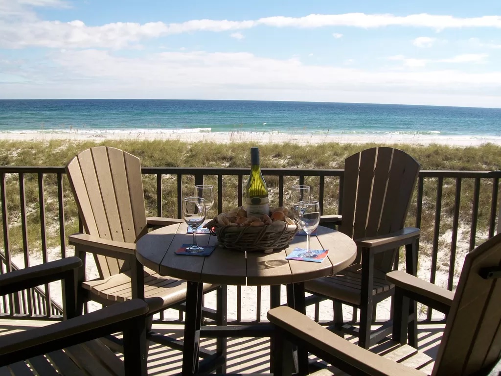 Step into this beautifully furnished end-unit townhome and feel instantly at ease. The expansive great room features a wall of windows that brings the emerald green waters and pearly white sand right into view—even when you’re lounging inside. With open-concept living, your whole group can gather to cook, dine, relax, or catch a movie on the 55" flat-screen TV while enjoying the ever-changing scenery of dolphins, turtles, and seabirds just outside. No pets.
