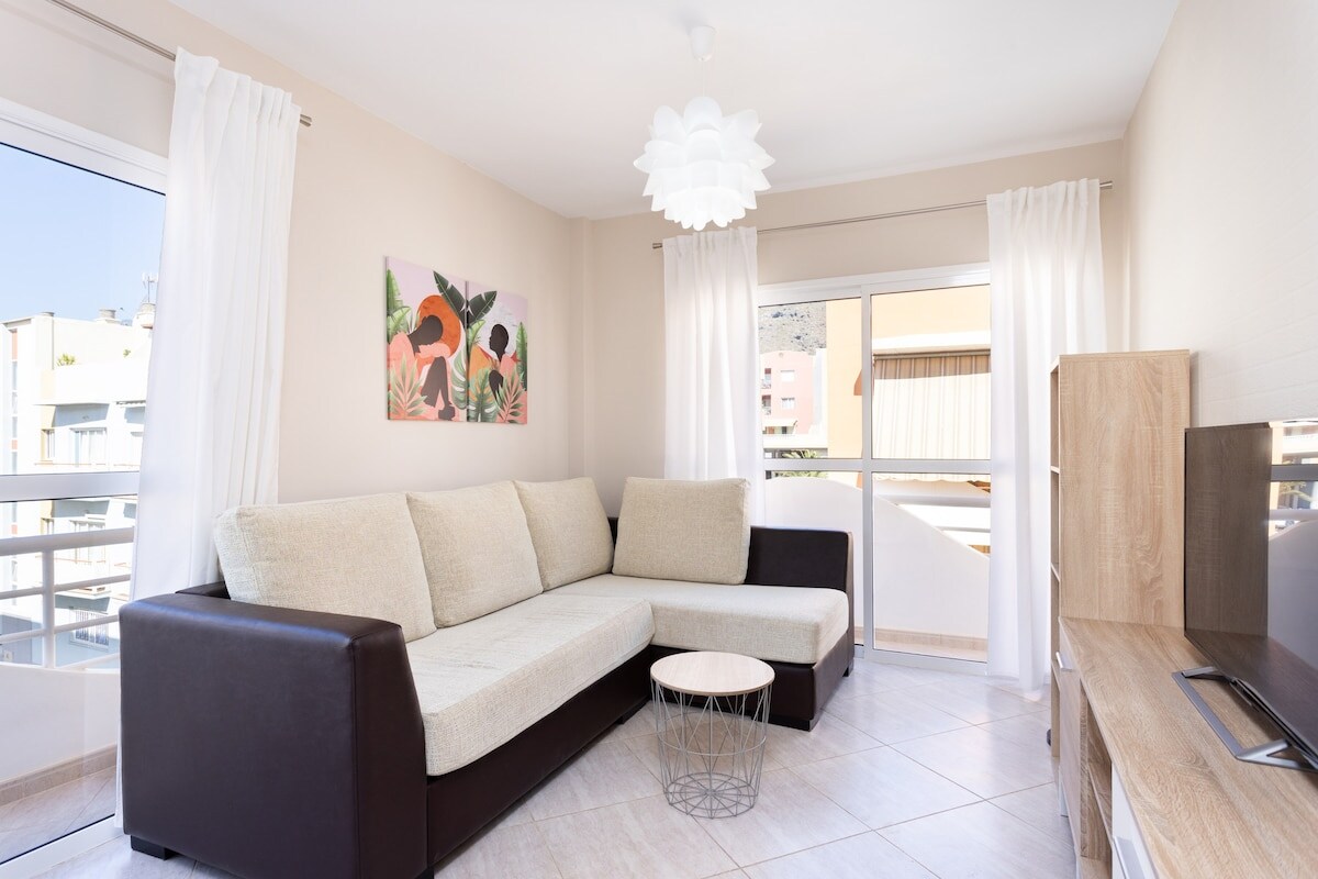This fantastic apartment, facind the sea, is ideal for families, couples and business trips, as it has capacity for 3 people and 1GB Fibre Wifi Internet, ideal for teleworking. With two spacious bedrooms, the master bedroom has a double bed, ceiling fan, a large walk-in wardrobe and access to a balcony with sea views. The second single bedroom also has a ceiling fan. The property has a bathroom with shower, independent kitchen fully equipped with all appliances, a spacious living-dining room with sofa, Smart TV 42" and direct access to the second balcony of the property. It is worth mentioning the spectacular private terrace located on the top floor of the building, which is accessed by lift and has an open-plan space of 30 m2 with chill-out area, where you can disconnect, enjoy the sun and have lunch while contemplating the breathtaking views of the sea. It also has all the necessary amenities and services around so that you can enjoy a unique holiday in Tenerife.