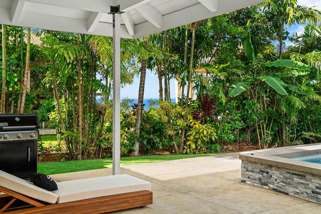 Escape to your own slice of paradise in our fully renovated Princeville retreat! Be among the privileged first guests to experience the sheer luxury and comfort of this stunning home sitting atop the cliffs above Queen’s Bath. This 5 bedroom, 5 bath features 4 spacious bedrooms with ensuite bathroom and one additional bedroom with three twins (2 on bottom and 1 on top). This light and bright updated home ensures ample space and privacy for you and your guests. This stunning retreat is situated in a Cul-de-Sac on one of Princeville’s prime locations, the famous Punahele bluff.