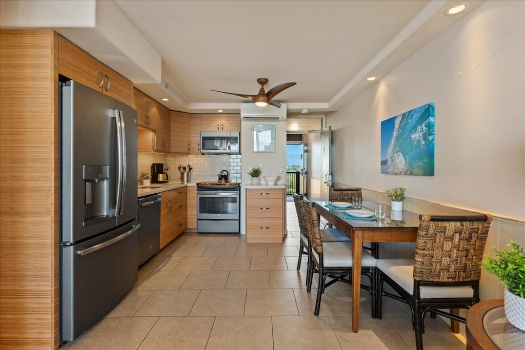 The resort atmosphere includes an oceanfront pool, two propane BBQs, onsite coin laundry facilities on each floor, a fitness center, 808 Deli and General Store, and open-air dining and full bar at the ground floor Restaurant coming late 2025. You can also rent beach gear and bikes at the Surf Shack Maui, conveniently located on the ground floor.
