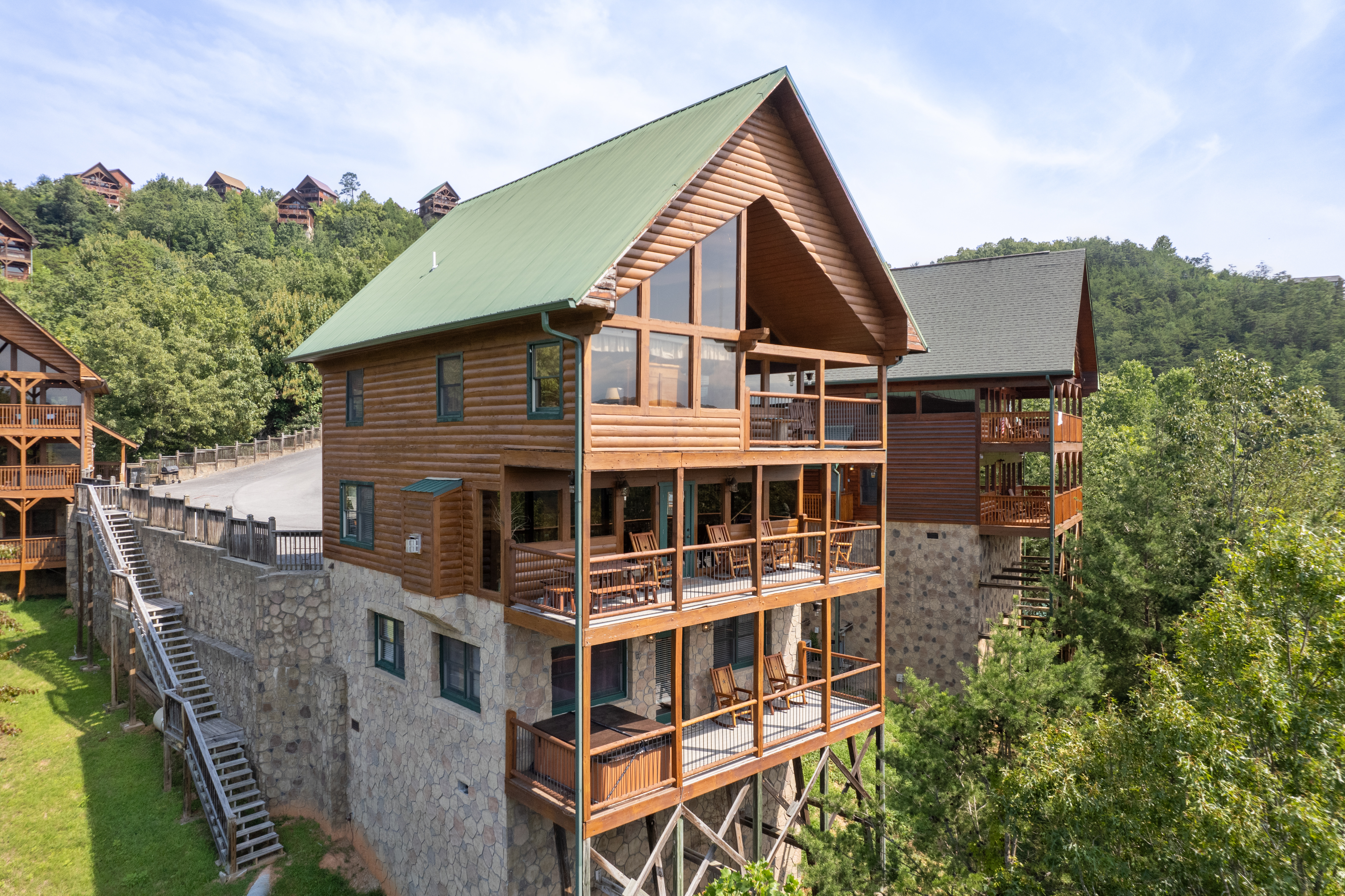 When you come to the Smokes you want to experience The Big View - and you’ll get just that at this spectacular luxury cabin for 10. Inside, there are four bedrooms, each with their own bathroom. Downstairs, a game room features a wet bar and pool table. There’s also a home theater for an epic movie night. Grab a cold drink, head out to the deck, and take in the view from a rocking chair or the bubbly hot tub. You get access to the resort pool. Just minutes from Dollywood!