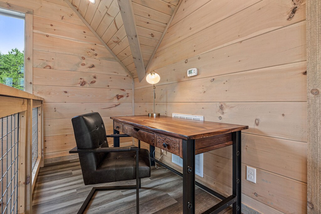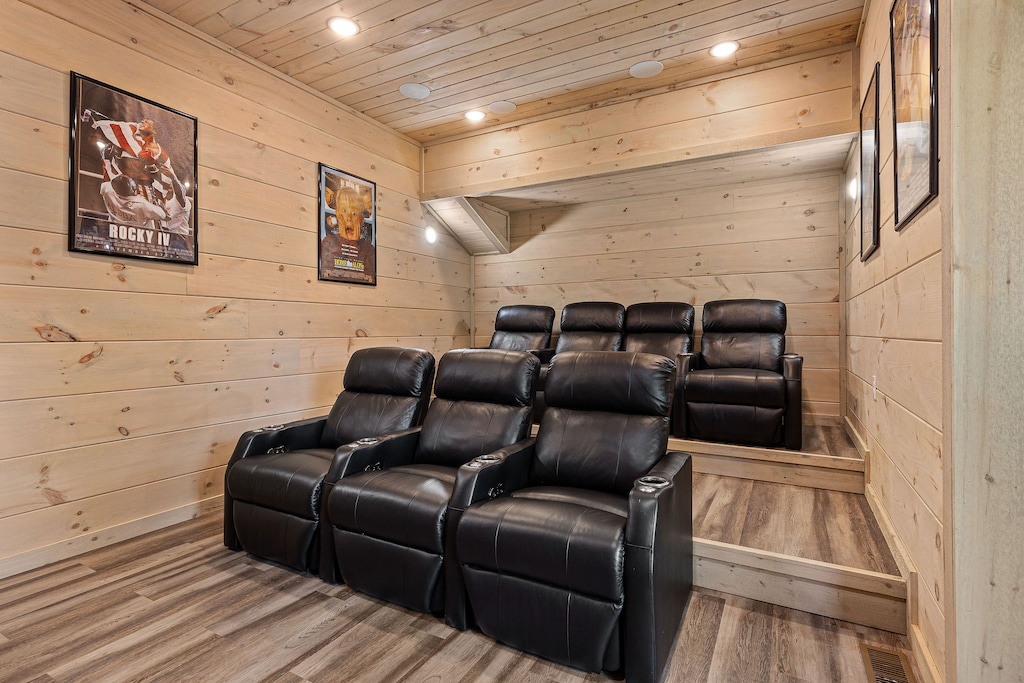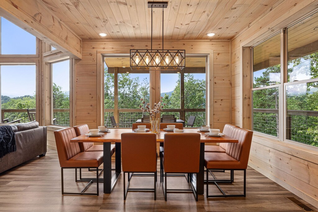 This luxurious cabin offers a tranquil yet entertaining retreat for families and groups. The spacious main floor features a gas fireplace in the living room, connecting seamlessly to the fully equipped kitchen. Each bedroom offers comfort and privacy, with the master suite boasting a king-size bed and en-suite bathroom. The cabin also includes a movie theater room, game room, hot tub, and quiet reading areas. A memorable and rejuvenating experience awaits all who stay here.