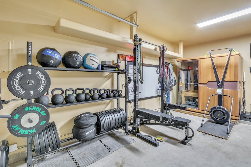 * Stay fit during your stay with our fully equipped gym, featuring Rogue equipment and a rowing machine.