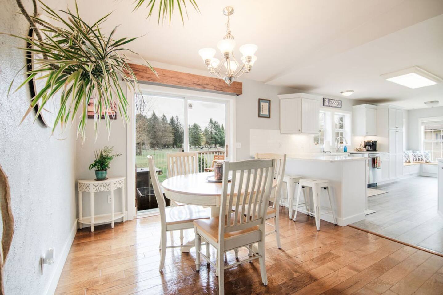 Located on a quite street in town Boyne City. This home is spacious & well laid out with a primary bedroom/ ensuite at one end of the house & two bedrooms with second full bath at the other. In the middle is the living room and dining/kitchen. The space is open & flows well right to the back yard. There you are greeted with a large patio & new deck furnature. The back yard is big and great for a game of football or soccer.