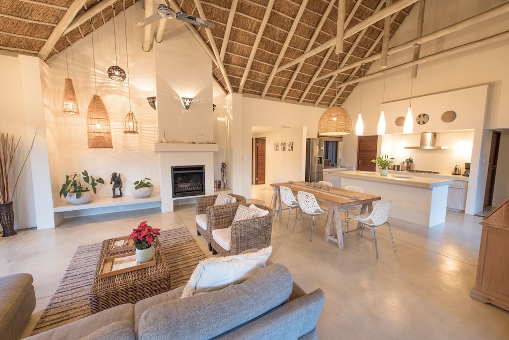 The heart of the villa is its bright, social living space with a large dining table indoors and another on the terrace, perfect for long, relaxed family meals. The outside area is a true highlight: a private heated pool where kids can splash around, a traditional South African braai (BBQ) and a beautifully situated boma firepit that’s perfect for storytelling under the stars.