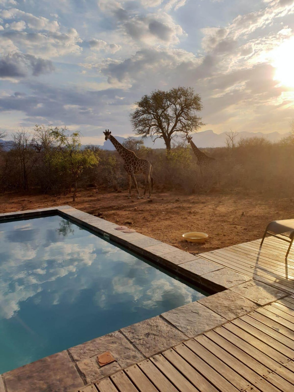 Safety and comfort come first. The villa is fitted with a full backup battery system, ensuring electricity during outages, and the estate is fully secure. And yes, giraffes, zebras and impalas really do walk by your terrace.