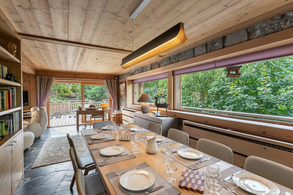 Renovated with expert craftsmanship by a renowned interior designer, this chalet offers maximum comfort and well-being. Its warm and welcoming interior combines natural materials like wood, leather, linen, and wrought iron, creating a peaceful atmosphere. The magnificent stone and wood fireplace in the living room serves as a centerpiece—a gathering spot for sharing moments of togetherness.