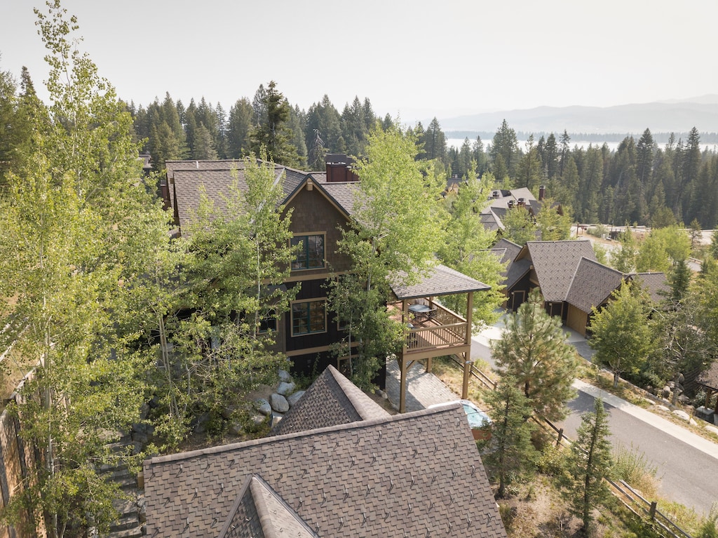 Sky High, is a 2 bedroom, 3 bathroom townhome at Property Manager which offers all the comforts of home, even for your fur baby! This 1,412 square ft. home is set in a natural setting and provides the perfect rustic retreat, complete with gorgeous mountain and lake views. You’ll enjoy entertaining in the kitchen which is stocked with all your basic needs, full sized appliances, granite countertops, stone backsplash, and a breakfast bar with stools. Relax in the living room by the natural stone wood burning fireplace, or step outside and fall in love with the fresh mountain air while you soak in the hot tub. The master bedroom features a king sized bed with an en suite spa like bathroom with a deep soaker tub and a walk in shower. The second bedroom has a comfortable queen sized bed with a bathroom nearby. For your convenience there is a single car garage and washer/dryer in this home.