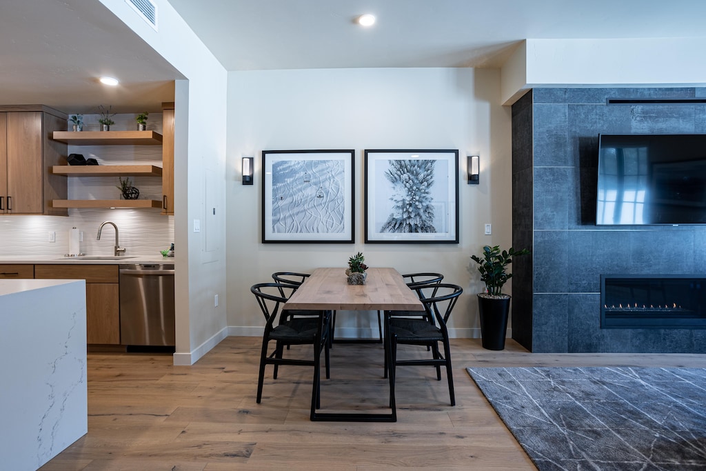 Be one of the first to enjoy the ambiance of staying in this one-bedroom condo located on the 3rd floor of the San Miguel Building overlooking the Plaza, Clearwater Coffee, and The Village Market. This new Mountain Contemporary design will not disappoint, featuring a King-Sized Bed & Queen Sleeper Sofa accommodating up to 4 guests. With a full-sized kitchen and appliances, you will easily have the comfort of home. Guests will enjoy a Small Patio, Free Wi-Fi, and Cable TV. Guests will have access to underground parking garage and it is only a few short steps away from the base of the ski hill.